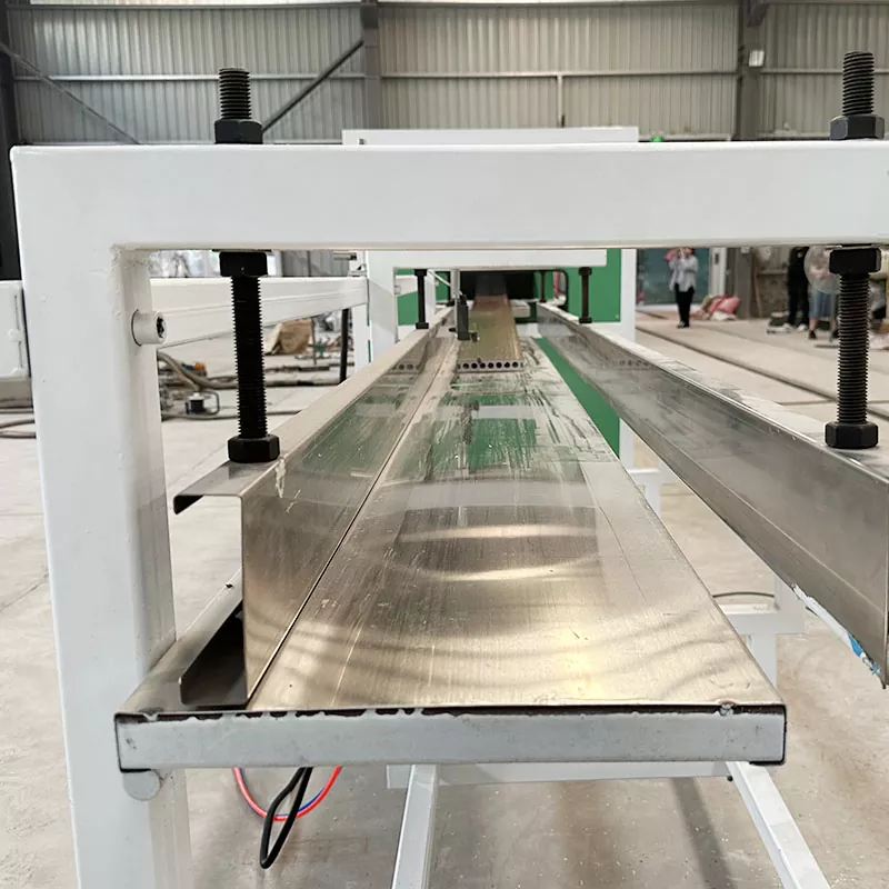 Пресс-форма оборудования для производства напольных покрытий для совместной экструзии ПВХ на открытом воздухе изготовлена из ковочного материала стали 3CR13, прецизионно обработана на станке с ЧПУ и отполирована. Долотообразная головка из сплава с штифтовым замком: все три машины взаимозаменяемы, в них используются специальные технологии сплавов и профессиональная формула, что в 2-3 раза превышает срок службы других долот.